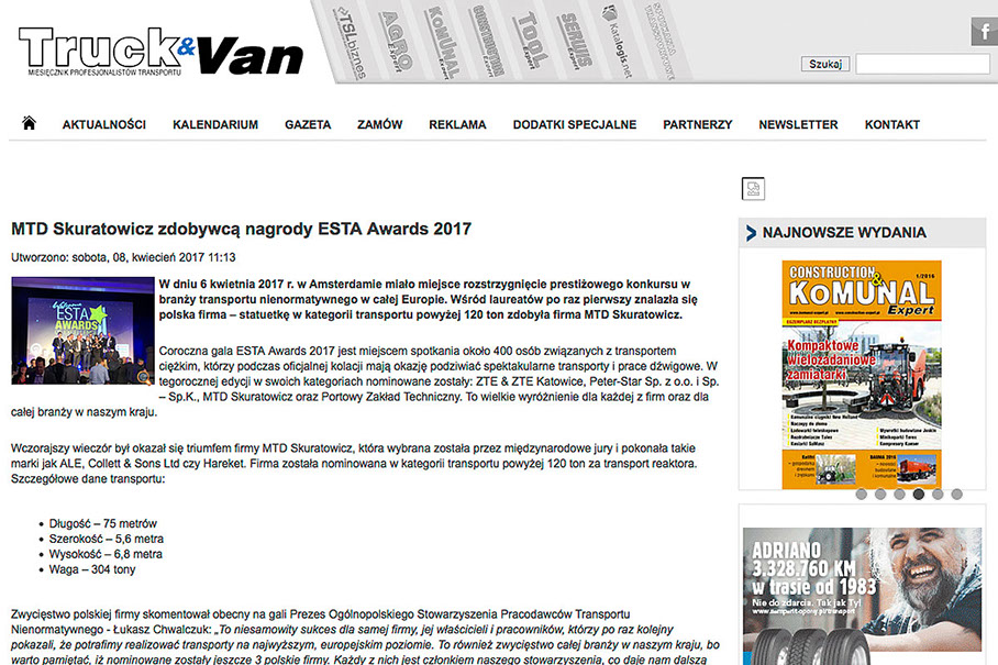 Я имею приятную возможность сообщить, что в 2017 году премия ESTA Award присвоена компании MTD.